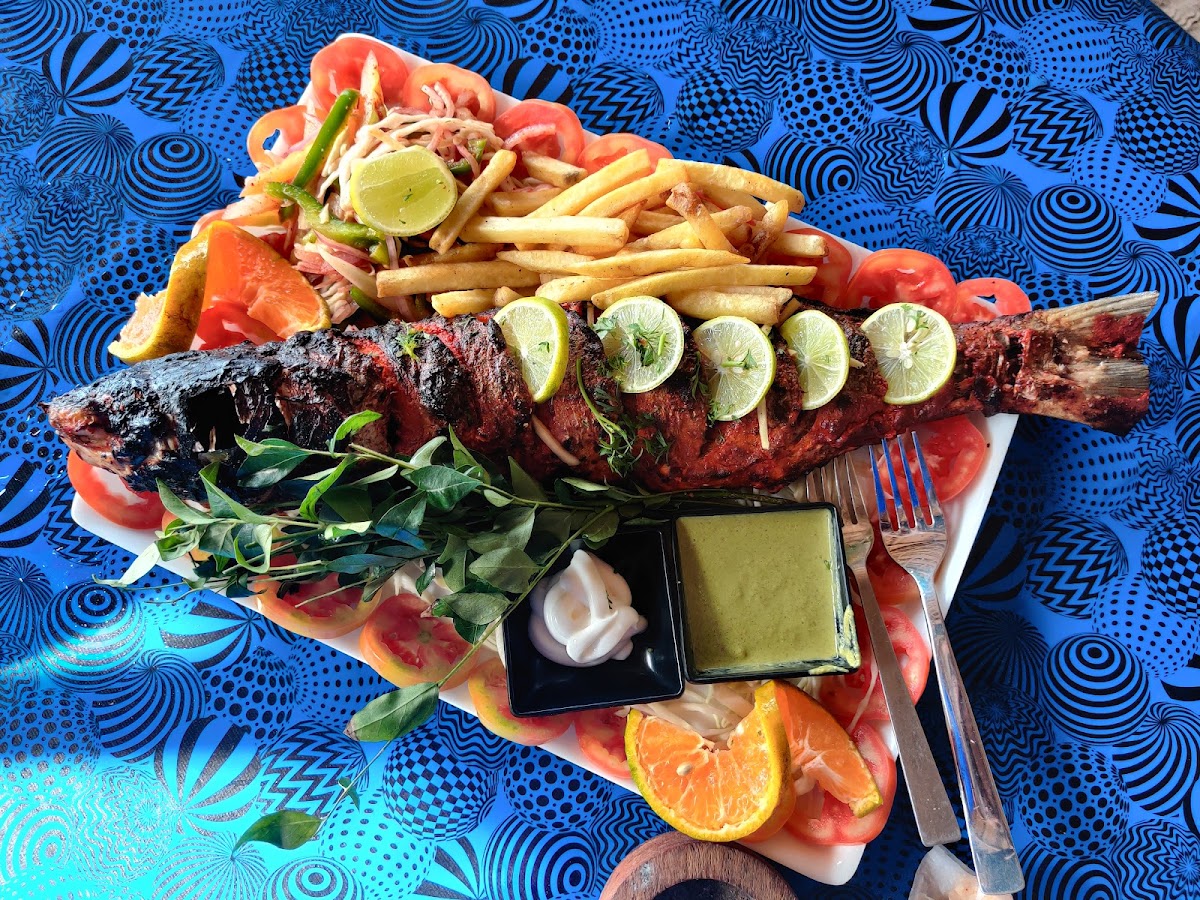 The café side leans into simple, comforting coastal and vegetarian dishes with some standout seafood options like Tandoor King Fish, Crab, and Pomfret Tava Fry. The menu also offers warm beverages like ginger milk tea and variety of fresh fruit juices and shakes, catering well to those who want a light bite or refreshing drink after time on the beach. The vibe is unpretentious—think straightforward food with friendly service, where locals and travelers mingle quietly without the bustle of larger tourist spots.